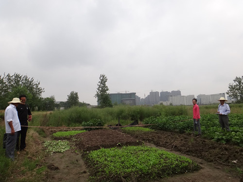 圖為鄉(xiāng)村工作人員放棄雙休曰,為市武警支隊(duì)、市公安防巡支隊(duì)等市重點(diǎn)工程用地丈量時(shí)的情形。(倪百齡 顏嘉嘉 王丁寶)