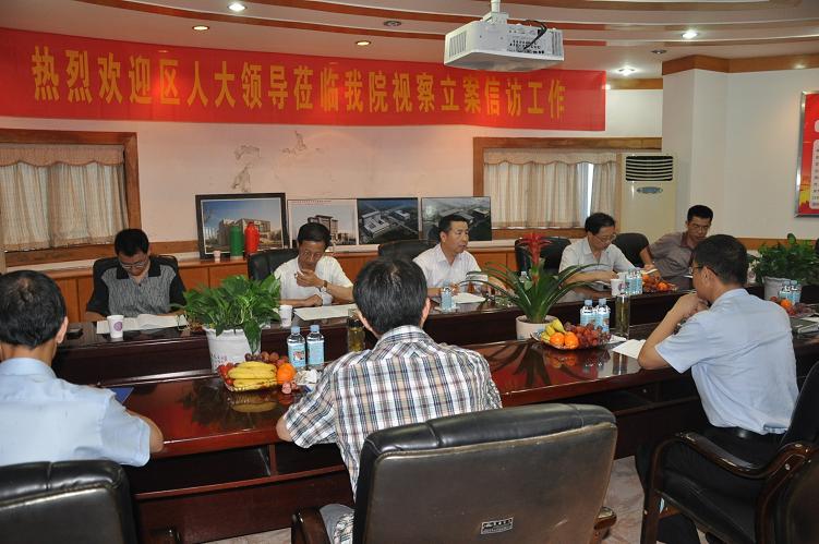 2012年7月13日,宜秀區人大常委會副主任張造林率領內務司法委員會一行四人到宜秀院調研立案信訪工作情況,院黨組書記、院長丁文軍和相關院領導參加了座談。
