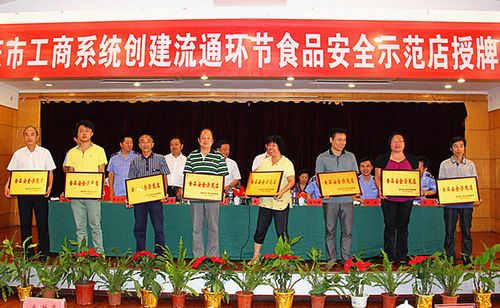 6月20日下午,安慶市流通環節“食品安全示范店”授牌儀式在皖源國際大酒店舉行。大橋開發區樂購超市作為全市40家“食品安全示范店”之一,宜秀區獲此殊榮僅兩家。(湯衛軍 江義學)