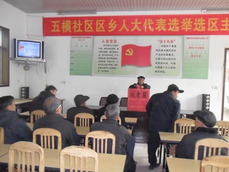 2011年12月25日是區鄉人大代表換屆選舉日。五橫鄉根據區人大統一安排,舉行全鄉區鄉人大代表選舉工作,經過廣大選民的認真選舉,共選舉產生了區人大代表18名、鄉人大代表52名。代表類型涉及各行各業,較好地體現了代表性和廣泛性。