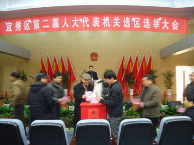 二是宣傳發動到位。集中培訓骨干。11月22日全區區鄉人大換屆選舉工作動員會后,區選舉委員會及時召開培訓會,對鄉鎮(街道)人大負責人、組織委員、人大秘書進行培訓。各選舉單位也采取以會代訓的形式,培訓選舉骨干480余人。營造良好氛圍。各級各部門積極組織,結合實際,全方位、多形式地進行宣傳。通過懸掛橫幅、張貼標語,在宜秀周刊和鄉鎮有線電視臺開辟宣傳專欄等形式,廣泛宣傳換屆選舉工作。據不完全統計,全區編發簡報5期,播發稿件8篇,懸掛橫幅200多條,張貼標語800多條,印發《致選民的一封信》10000多份,發放工作指南200冊。區選舉委員會還會同北部新城建設管理局、大龍山鎮選舉委員會在206國道與新城大道交匯處制作了180平方米的巨型宣傳牌。通過廣泛宣傳,努力讓廣大選民做到“四個知道”,即知道區鄉人大換屆選舉的重要意義、知道公民參加選舉的權利和義務、知道推薦代表候選人的基本條件、知道投票選舉的時間和地點。