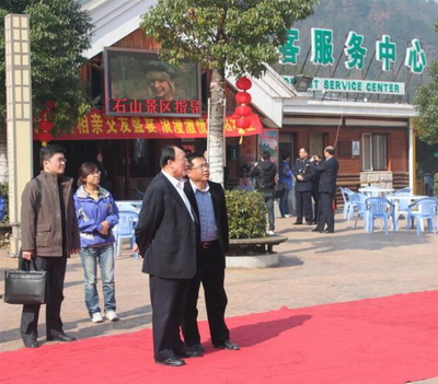 季昆森先生饒有興致地參觀了景區的游客服務中心、會務中心和度假賓館,認真聽取了景區旅游開發建設情況的匯報。獨特俊美的巨石山風景和悠揚動聽的黃梅戲文化,給季老先生一行留下了十分美好的印象。