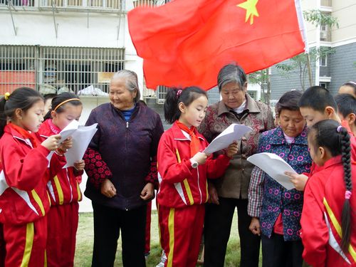 10月28日,宜秀區大橋街道中心小學的師生來到葉祠還建點開展“小手牽大手共做文明人”宣傳活動,向社區居民倡議自覺遵守社區公約做文明市民,受到居民歡迎。