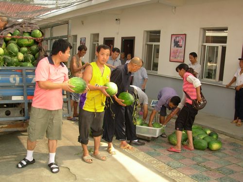 7月30日,宜秀區民政局購買了10000斤西瓜分送到14個敬老院和2所光榮院,給老人們防暑降溫,受到老人們歡迎。