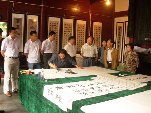 圖片說明:6月7日,宜秀區五橫鄉在鄧石如故居舉辦慶祝建黨90周年農民書畫筆會。10多位土生土長的農民書畫家現場揮毫潑墨,抒發對中國共產黨的熱愛,對社會主義祖國的贊美。供稿:陳秀根 王良海通聯:宜秀區委宣傳部陳秀根
