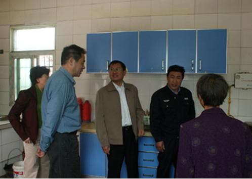 圖為陶文波一行走進農戶家中察看使用沼氣情況。