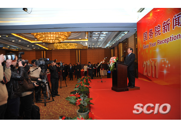 新華網(wǎng)北京12月16日電(記者華春雨)國(guó)務(wù)院新聞辦公室16日在北京舉行2011年新年招待會(huì)。外國(guó)駐華使節(jié)、國(guó)際組織代表、外國(guó)和港澳臺(tái)駐京記者,以及中央和國(guó)家機(jī)關(guān)新聞發(fā)言人、中央有關(guān)新聞單位負(fù)責(zé)人等約380人出席。