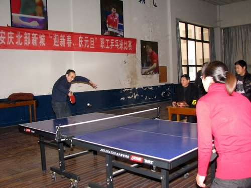 2010.12.31日下午,北部新城建設指揮部工會在曙光乒乓球館舉行“迎新春慶元旦”乒乓球比賽.60名參賽選手經(jīng)過7輪緊張激烈的較量,最后由張震、胡曉敏(女)、洪光輝奪得前三名。市乒乓球協(xié)會主席、原市人大副主任孫嘉達、北部新城建設管理局局長程廷燦、原宜秀區(qū)政協(xié)副主席汪大宗分別為獲獎選手頒獎。