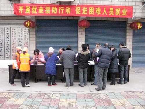 為認真貫徹落實黨的十七屆五中全會精神,宜秀區人社局、殘聯、就業局在市人社局、市殘聯的精心指導下,正式啟動了自元月5日起為期一個半月的“就業援助月”活動,該活動以促進就業困難人員就業,落實就業扶持政策,著力做好城鎮零就業家庭、貧困家庭未就業高校畢業生和殘疾人登記失業為目的,通過提供就業服務援助、就業崗位援助、就業政策援助等各種形式,建立“出現一人,認定一人,扶助一人,穩定一人”的就業援助工作機制,該活動以“送政策、送崗位、送服務、送溫暖”為主題,為認定為援助對象的就業困難人員,零就業家庭和殘疾登記失業人員提供就業援助。(張強林)