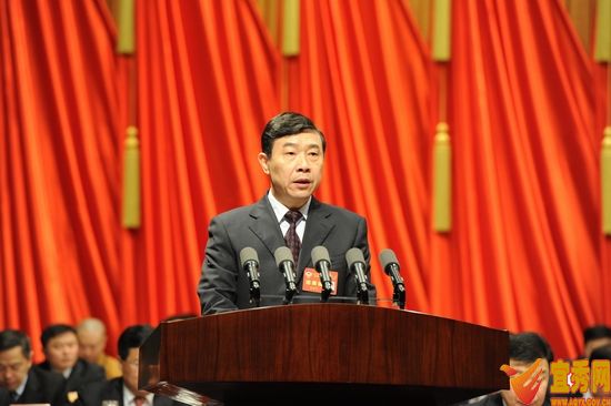 王明方在政協第十一屆安徽省委員會第一次會議上作十屆省政協常務委員會工作報告。
