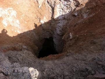 去年9月的一個夜晚,一陣土石碰撞的“隆隆”聲,讓廣元利州區工農鎮三顆村6組的村民黃大金感到驚奇,拴在房屋外邊的黃牛也叫了一整夜。第二天才發現“隆隆”聲正是地陷的聲音,在黃牛旁邊出現了一個小“坑”。接下來的幾天,“隆隆”聲始終不斷,6晝夜后,原有的小坑變成了直徑近20米,深不見底的“天坑”。