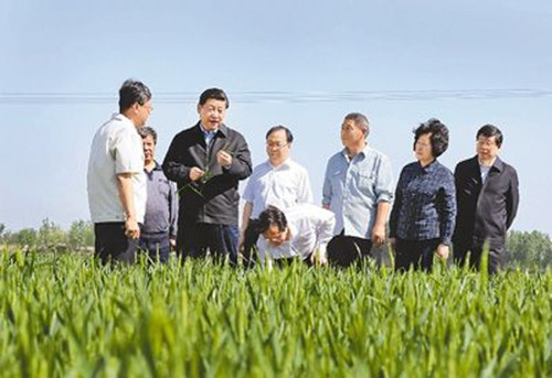 習近平十分關心夏糧形勢。在列車上,他就向隨行的農業部門負責人了解全國夏糧生產情況。到武清站一下列車,他直接來到南蔡村鎮丁家(瞿阝)村的小麥大田,仔細察看小麥長勢,向農民詢問田間管理和預產情況,叮囑當地干部加強農技服務,搞好田間管理,努力爭取夏糧豐收。他強調,一個國家只有立足糧食基本自給,才能掌握糧食安全主動權,進而才能掌握經濟社會發展這個大局。他希望天津加快發展現代都市型農業,努力提高糧食自給能力,為確保國家糧食安全多作貢獻。