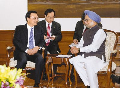 李克強表示,中印關系近年取得長足發展。前不久,習近平主席和總理閣下在金磚國家領導人第五次會晤期間會面,我就任總理后也與你通了電話。兩國領導人對于推動中印關系再上一個新臺階、開辟新篇章擁有共識。我此次訪印就是想向全世界表明,中印政治互信在增加,務實合作在拓展,共同利益遠大于分歧,兩國完全有意愿、有智慧、有能力共同培育亞洲合作的新亮點,打造世界經濟的新引擎,為亞洲和世界提供巨大的發展潛力和市場需求,推動中印面向和平與繁榮的戰略合作伙伴關系繼續向前發展。