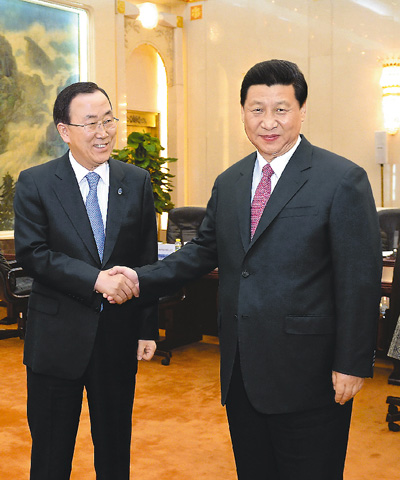 6月19日,國家主席習近平在北京人民大會堂會見聯合國秘書長潘基文。