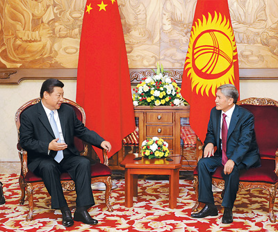 兩國元首共同會見了記者。習(xí)近平指出,中吉關(guān)系提升為戰(zhàn)略伙伴關(guān)系,為今后兩國關(guān)系發(fā)展提出了新目標(biāo)。雙方將以此為新起點(diǎn),增進(jìn)政治互信,深化互利合作,更好造福兩國人民。我相信,在中國和中亞國家共同努力下,“絲綢之路經(jīng)濟(jì)帶”一定會在不遠(yuǎn)的將來收獲豐碩成果。