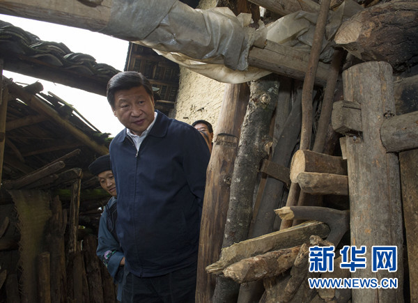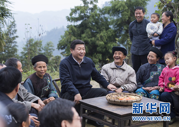 在湘西州花垣縣排碧鄉十八洞村,習近平到苗族貧困村民施齊文家中看望,坐下來同一家人算收支賬,詢問有什么困難、有什么打算,察看了他家的谷倉、床鋪、灶房、豬圈,勉勵一家人增強信心,在黨和政府關心下用勤勞和智慧創造美好生活。