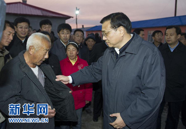 今夏,黑龍江部分地區(qū)遭受嚴重洪澇災害,近9萬戶群眾的房屋損毀或倒塌。眼下臨近隆冬,災區(qū)又地處嚴寒地帶,正值過冬安置的關鍵時刻,受災群眾能不能安全溫暖過冬,李克強十分牽掛。他來到受災最嚴重的同江市八岔赫哲族村,踩著泥濘濕滑的道路,查看村民房屋狀況和越冬準備情況。他對圍攏來的群眾說,你們這里洪災發(fā)生后,黨中央國務院高度重視,習近平總書記等中央領導同志作出批示,省委、省政府帶領大家奮力搶險救災,做了大量艱苦細致的工作,取得了抗洪救災的勝利,沒有因災死亡一個人。他特別叮囑當?shù)馗刹浚@里冬天冰天雪地,最低溫度達零下40攝氏度,要把排查工作做細做深做到位,看群眾房屋安不安全,保暖程度夠不夠,絕不能讓一個群眾受凍,使大家住得保暖、住得保險。暮色漸濃,李克強走進安置受災五保戶和特困戶的銀川鄉(xiāng)幸福大院,看到新建的安置房里暖融融的,他十分高興。他對周圍的群眾說,黨和政府惦記你們的冷暖,我們一起努力共渡難關、重建家園。冬天過暖和了,來年一定有好春天、好日子。考察回到駐地,李克強又立即召開工作會,進一步部署做好群眾越冬、災后重建、水毀工程修復和今冬明春農(nóng)業(yè)生產(chǎn)等工作。