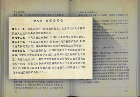 新修訂的黨章中專門增設了“黨的監察委員會”一章,對中央和省監察委員會產生的方式、職責權限范圍以及工作運行機制都作了詳細的規定。