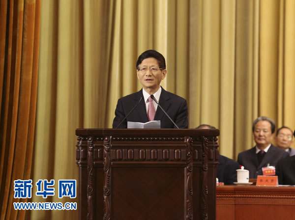 11月29日,中國法學會第七次全國會員代表大會在北京人民大會堂開幕。中共中央政治局委員、中央政法委書記孟建柱受習近平總書記委托代表黨中央發表題為《積極投身法治中國建設的偉大實踐》的祝詞。新華社記者丁林攝