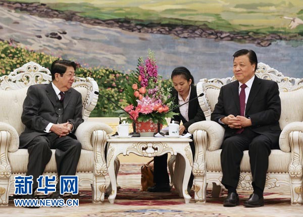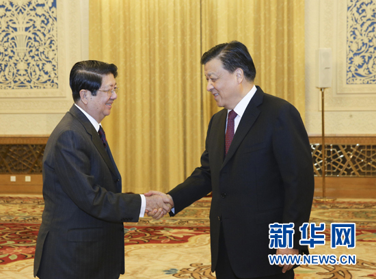 12月18日,中共中央政治局常委、中央書記處書記劉云山在北京人民大會堂會見由索安副首相率領(lǐng)的柬埔寨人民黨代表團(tuán)。 新華社記者丁林?jǐn)z