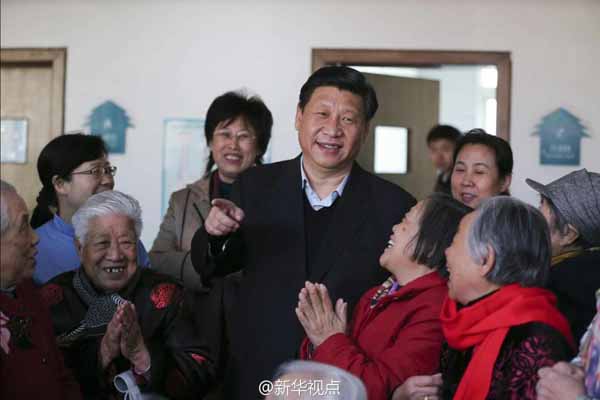 新華網(wǎng)北京12月28日電 據(jù)新華社新華視點微博報道,在四季青敬老院,正在開展讀書讀報活動的老年人見到總書記來了,十分激動,熱情邀請總書記聽他們誦讀《養(yǎng)生歌》。習(xí)近平認(rèn)真聽完后,同老人們交流心得。他說,活到老,學(xué)到老。保持健康心態(tài)和身體,就要靠這樣積極進(jìn)取的精神。從你們的讀書活動中我得到很多啟示。