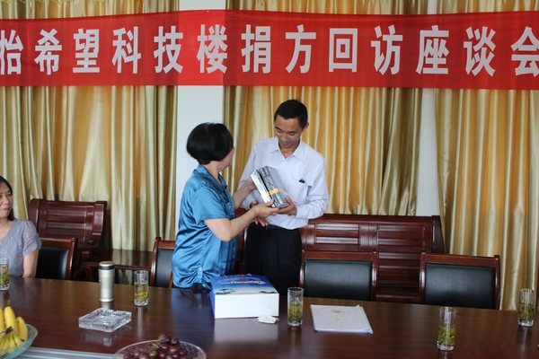 此次回訪活動,她們在區領導的帶領下,首先興致勃勃的參觀了五橫初中的校園。青山疊翠,樹木蔥濃,校舍整潔。學校幾年來面貌煥然一新,方老參事一行每到一處都很激動,感動于五橫初中這幾年的巨大變化,感動于黨和政府這幾年對學校的投入,教育城鄉均衡發展。與行人員還在五橫初中會議室舉行了捐方回訪座談會,會議氣氛祥和,方參事代表捐方激動的談到,捐資五橫初中并在科技樓內建設鄧稼先事跡陳列室不僅僅是我們的鄉情大愛,更主要的是充實學校的愛國主義內涵,希望學校發揚稼先精神,為社會培養更多的人才。方參事還在座談會上代其親屬向學校捐贈了兩套科普圖書《大數學家》。副區長程海東代表區政府表達了感謝之情,并報告了宜秀區義務教育均衡發展的情況,學校將在校舍安全、美好學校、提高學生素養、提高創新能力方面繼續邁進。教育局方局長代表學校向捐方介紹了學校近幾年的發展情況,感動于捐資助學的義舉,并表示學校一定不辜負捐方的期望,要內涵發展,硬件提升,品味提高,精品化打造五橫初中。省希望工程辦公室劉俐金主任、五橫初中趙章杰校長也發表了感言。