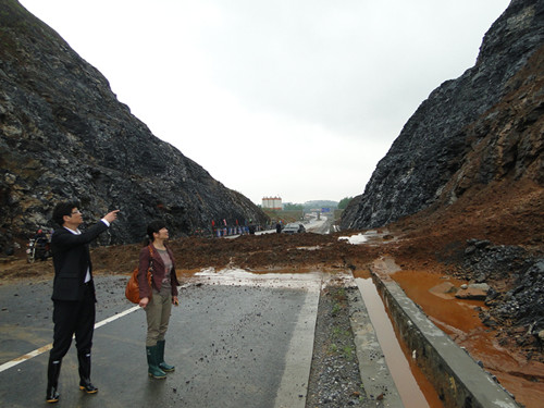 連日來,受汛期雨水多因素影響,大龍山鎮與大觀區交界處的環城西路一側山坡發生泥土松動,出現較小滑坡,未造成人員傷亡和財產損失。