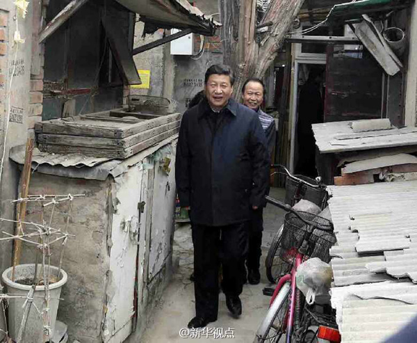 新華網北京2月25日電 據新華社“新華視點”微博報道,雨兒胡同29號、30號是北京典型的大雜院,院里都是小平房,過道狹窄。“做飯燒什么?”“取暖方便不方便?”“胡同里幾個廁所?”總書記走進王云鳳等4戶人家,問冷暖,聽心愿。在北京老城區長大的習近平說,這一片胡同我很熟悉,今天來看看老街坊,了解大家實際生活情況。