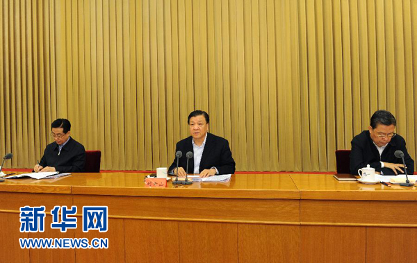 4月18日,中共中央政治局常委、中央書記處書記、中央黨的群眾路線教育實踐活動領導小組組長劉云山在北京出席部委企業高校深化整改工作座談會并講話。新華社記者 饒愛民 攝
