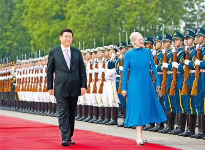 瑪格麗特二世表示,我這次訪華親眼目睹了中國巨大發(fā)展變化,留下深刻美好的印象。隨我訪問的有多名丹麥政府內(nèi)閣大臣。我希望通過這次訪問,進(jìn)一步深化兩國業(yè)已存在的良好關(guān)系,增進(jìn)兩國人民相互了解和友誼,推動(dòng)互利合作取得更多成果。