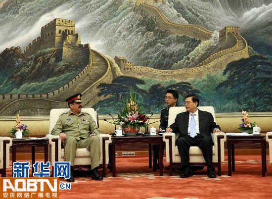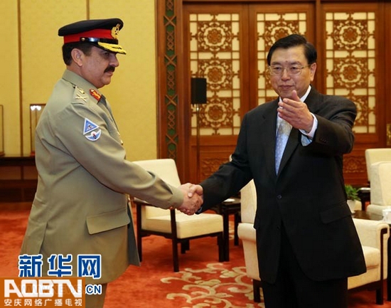 6月5日,全國人大常委會委員長張德江在北京人民大會堂會見巴基斯坦陸軍參謀長拉希勒。 新華社記者 劉衛兵 攝