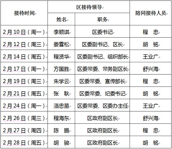 宜秀區2014年2月黨政領導干部信訪接待日安排表