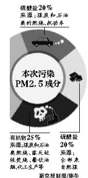 張大偉介紹,從本次污染PM2.5的成分在線監(jiān)測(cè)結(jié)果看,最高的是三大類(lèi)污染物,一類(lèi)是有機(jī)物,約占四分之一,另外兩類(lèi)是無(wú)機(jī)物,即硫酸鹽和硝酸鹽,各占20%,三大類(lèi)的污染物在PM2.5濃度里占60%多的濃度水平,也是形成這次重污染的主因。