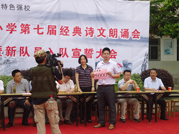 活動(dòng)在羅嶺中心學(xué)校校長(zhǎng)金和常的開幕詞中拉開序幕,他希望該校的全體師生,堅(jiān)定不移地走個(gè)性化、特色化和文化立校的內(nèi)涵式發(fā)展之路,并通過誦讀活動(dòng)的開展使學(xué)校的辦學(xué)品位不斷提升,品牌效應(yīng)不斷顯現(xiàn)。之后,民政局領(lǐng)導(dǎo)向林春小學(xué)捐贈(zèng)了5000元的慰問金,此舉是踐行黨的群眾路線活動(dòng)的具體行動(dòng),深深地感動(dòng)了學(xué)校的每位師生。接著,徐永生書記對(duì)關(guān)心支持教育的各級(jí)領(lǐng)導(dǎo) 及社會(huì)各界人士表示衷心的感謝,并鄭重宣布本次活動(dòng)開幕。之后,匯演活動(dòng)正式開始,師生們同臺(tái)演出,他們把對(duì)詩(shī)詞的熱愛、理解、追求,或誦、或演、或唱、或舞地表達(dá)出來。精彩紛呈的節(jié)目,博得了領(lǐng)導(dǎo)嘉賓們的陣陣喝彩,會(huì)場(chǎng)上不斷地響起了雷鳴般的掌聲。最后,領(lǐng)導(dǎo)們與演出代表合影留念。