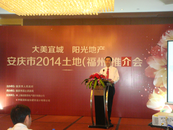 5月8日,區長婁雪松在福建省福州市參加了“大美宜城•陽光地產”安慶2014土地(福州)推介會。