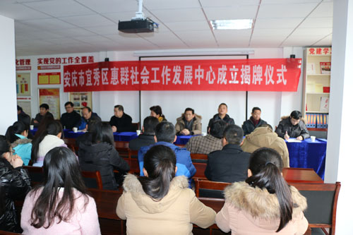 成立儀式上,區民政局相關負責同志宣讀了《準予安慶市宜秀區惠群社會工作發展中心登記決定書》,惠群社會工作發展中心負責同志全面介紹了機構的運營情況。區民政局還為惠群社會工作發展中心贊助了5000元工作經費。張造林、張帆以及區民政局負責同志和安慶師范大學人文學院院長共同為“惠群社會工作發展中心”揭牌。