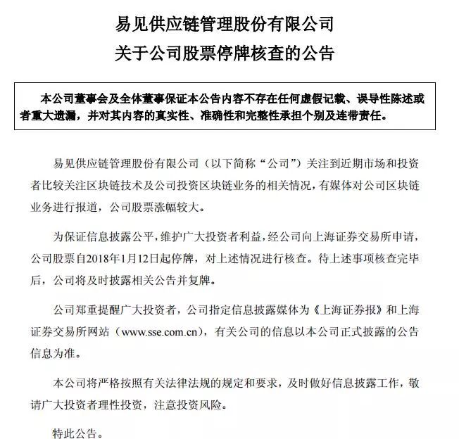 “區(qū)塊鏈第一股”易見股份連續(xù)4日漲停,股票明日起停牌核查。