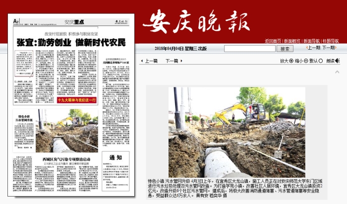 [安慶日報] 宜秀區:特色小鎮 污水管網升級