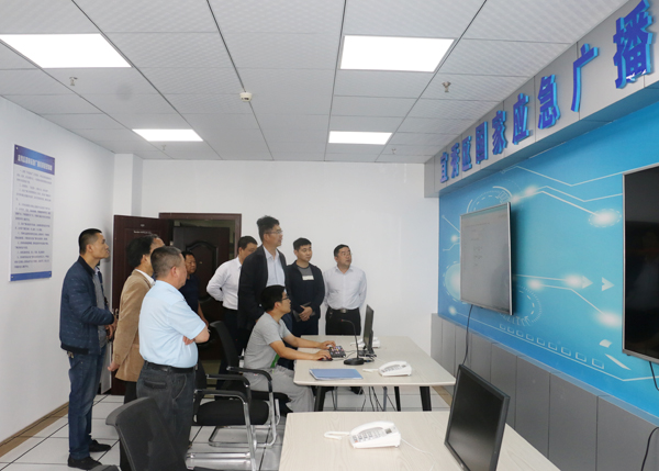 蔣麟一行詳細了解了宜秀區國家應急廣播播控平臺建設情況,并深入到羅嶺鎮黃梅村,實地查看應急廣播試點建設及設備運行情況。