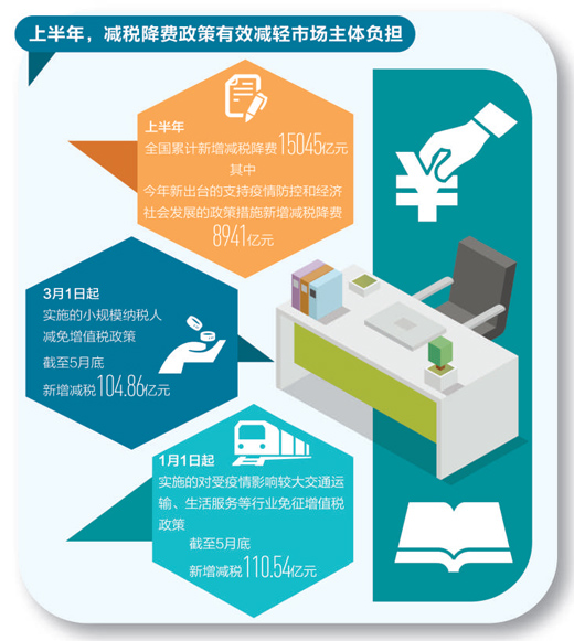今年以來,面對復雜嚴峻的經濟形勢,黨中央、國務院及時部署出臺了一系列減稅降費政策,助力市場主體紓困發展。上半年全國新增減稅降費15045億元,有效減輕了市場主體負擔。