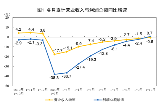 五是私營企業利潤和外資企業利潤恢復向好。隨著一系列助企紓困和金融支持實體經濟政策落地見效,各類市場主體活力穩步恢復,盈利狀況改善。1—10月份,私營企業利潤同比增長1.1%,1—9月份為下降0.5%;外商及港澳臺商投資企業利潤增長3.5%,增速加快0.9個百分點。