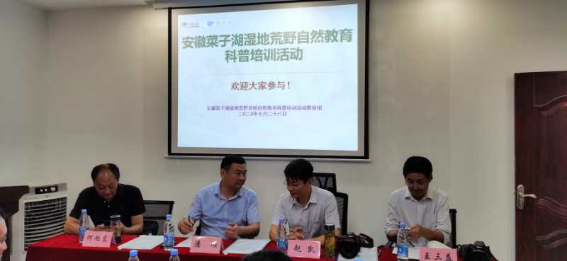 7月28日上午,由安慶菜子湖國家濕地公園保護中心主辦、安慶市菜子湖濕地生態保護協會協辦的“濕地荒野自然教育培訓班”在科普宣教中心開班。濕地公園管理人員、技術人員,保護協會巡護員、會員代表,安慶一中學生志愿者及社會公眾代表六十余人參訓。宜秀區政府副區長王曉峰到場指導,宜秀區林業局、宜秀區科協負責同志受邀參加。