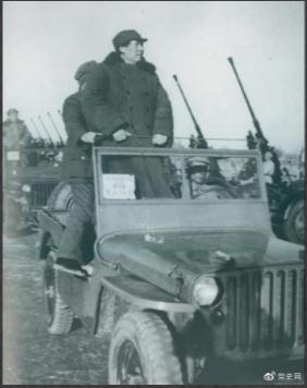 1949年3月25日,毛澤東在北平西苑機場檢閱部隊。