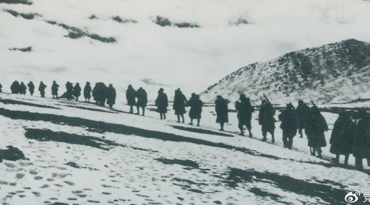 1950年3月,人民解放軍開始向西藏進軍,10月6日至24日進行了昌都戰(zhàn)役,攻占昌都,打開了進軍西藏的大門,為和平解放西藏奠定了基礎。圖為迂回昌都南路的人民解放軍行進在海拔5000米的怒山山脈雪嶺上。