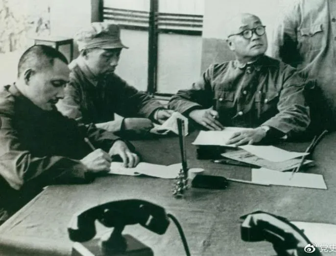 1949年11月1日起,人民解放軍向西南進軍。圖為鄧小平與劉伯承、張際春等研究進軍西南問題。