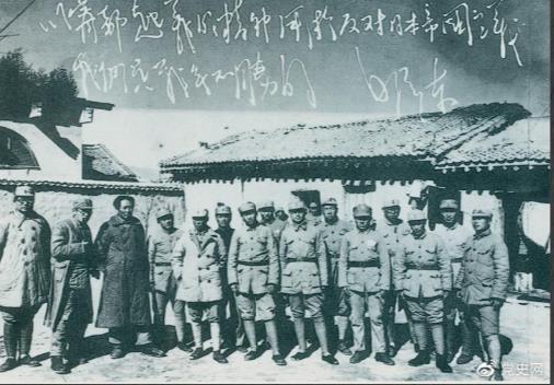 1931年12月14日,國民黨第二十六路軍在趙博生、董振堂、季振同、黃中岳率領下,于江西寧都起義,加入工農紅軍,編為紅軍第五軍團。圖為1937年毛澤東、王稼祥、蕭勁光與寧都起義的參加者在延安合影。