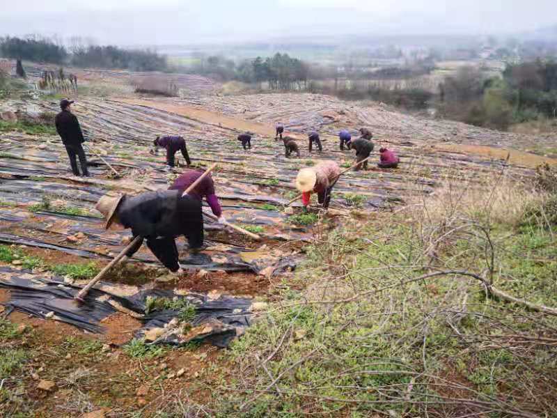 3月4日上午,天氣晴朗,萬里無云,在姥山社區新建的生態茶園里,隨處可見忙碌的工人們,他們栽苗除草,澆水開溝,相互協作,一派繁忙景象。