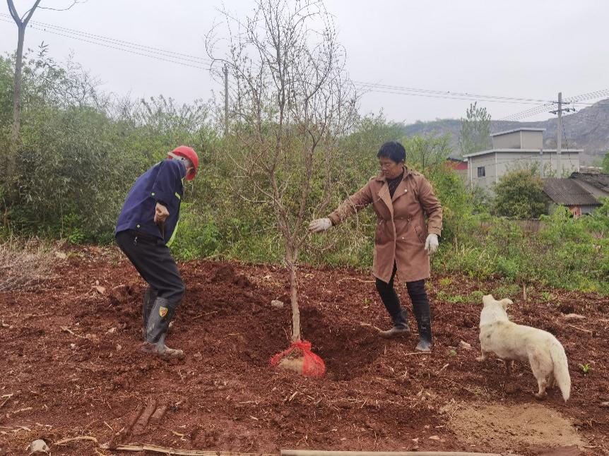 4月8日上午,倉房社區(qū)軟籽石榴基地樹苗剛一到,為了提高樹苗的存活率,便開始了緊鑼密鼓的栽種工作。此次栽種工作由社區(qū)的6名脫貧戶負責,利用一天的時間的完成150棵大樹苗栽種,現(xiàn)場一片繁忙,這片10畝的軟籽石榴基地也交由脫貧戶管理。