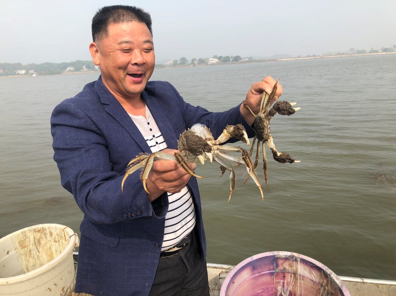 正值螃蟹捕撈季,在宜秀區(qū)楊橋鎮(zhèn)螺山村“東風(fēng)湖河蟹生態(tài)養(yǎng)殖”基地,承包人劉光兵笑口顏開,因?yàn)榻衲牦π反筘S收,年產(chǎn)值預(yù)計(jì)可以實(shí)現(xiàn)500萬元以上。