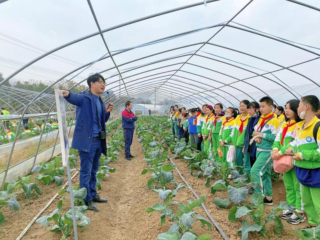 走進白澤湖鄉白澤社區午壩居民組,晨曦的暖陽中一抹顯眼的綠映入眼簾,鮮艷的紅領巾迎著微風飄揚。11月17日上午,白澤社區攜手安慶德元生態農業有限公司誠邀朝陽路小學六年級的160余名學生到轄區內中小學教育實踐體驗課基地開展“體驗美麗鄉村,助力鄉村振興”研學活動。活動伊始,安慶德元生態農業有限公司技術人員帶領學生們參觀了基地的大棚,了解農作物的品種,用風趣幽默、寓教于樂的方式講解它們生長的過程,觀察基地時令瓜果蔬菜生長狀況。學生們認真聽認真記,或是駐足向園內工作人員請教相關知識,或是興致勃勃地用手觸摸農作物的葉果,歡聲笑語不斷。